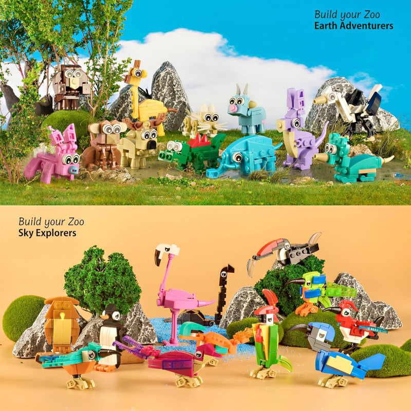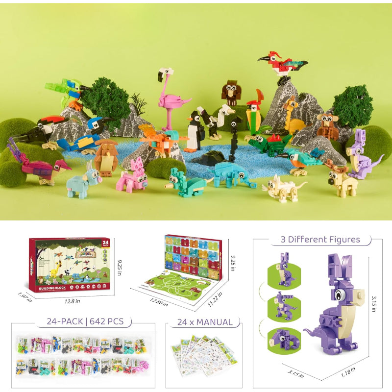 Includes 24 unique animal building blocks, with designs inspired by various animals such as birds, mammals, and aquatic creatures.