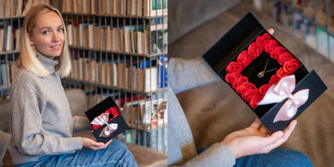 Package includes: Rose Jewelry Box, Gift Bag and Necklace