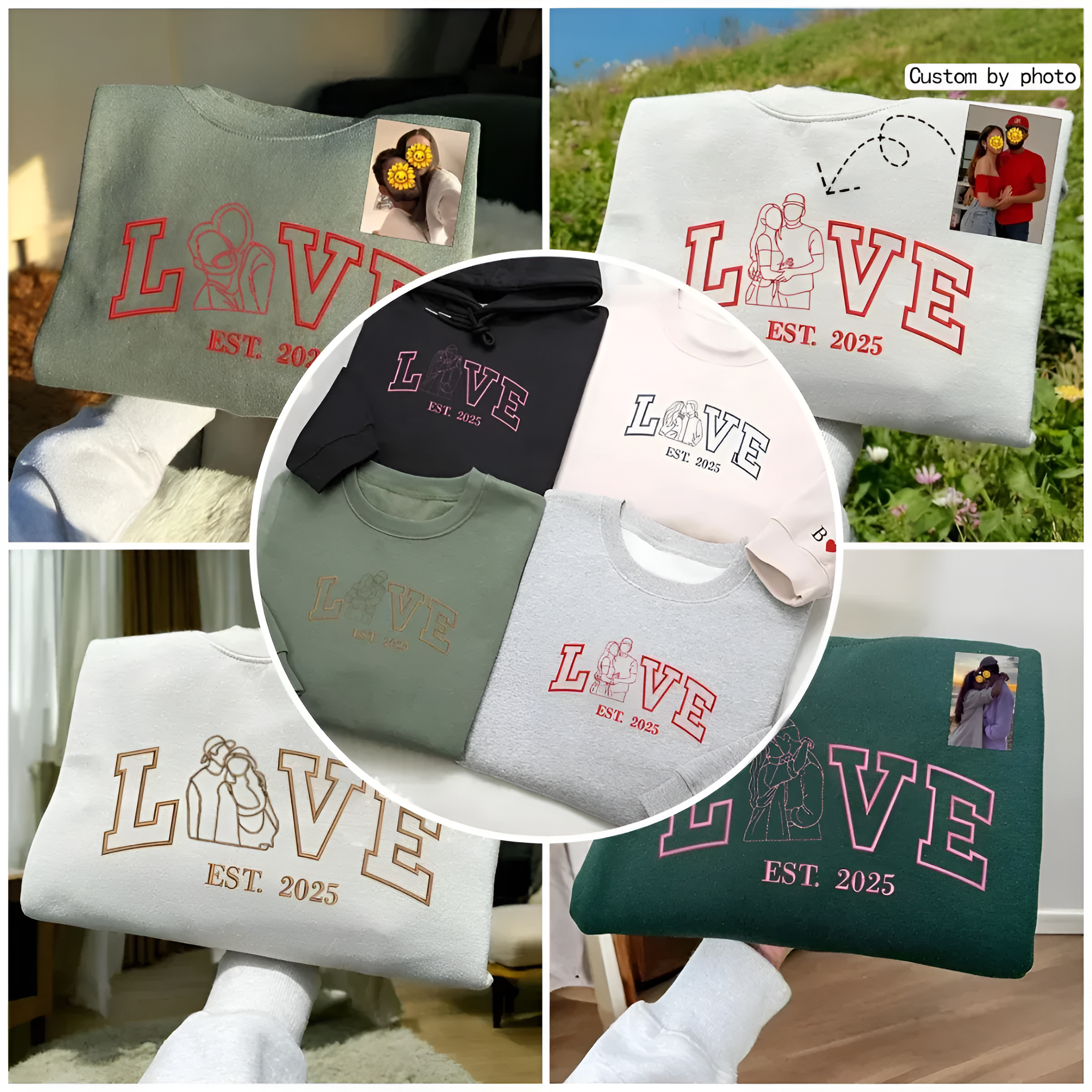 Personalized Couple Photo Apparel provides a refined way to turn a selected photo into a wearable embroidered design. Featuring custom stitching, name details, and an established year, this sweatshirt and hoodie option balances personalization with everyday comfort. Designed for coordinated wear or individual styling, it offers a lasting apparel piece that fits naturally into casual wardrobes while maintaining a clear and structured embroidered presentation.