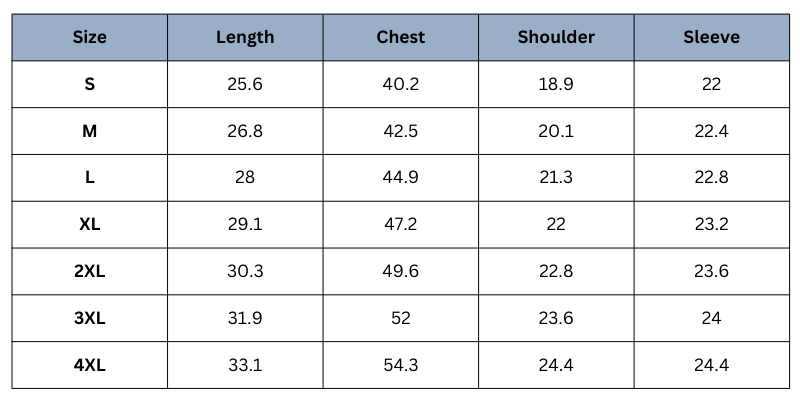 Size Chart (Inches):